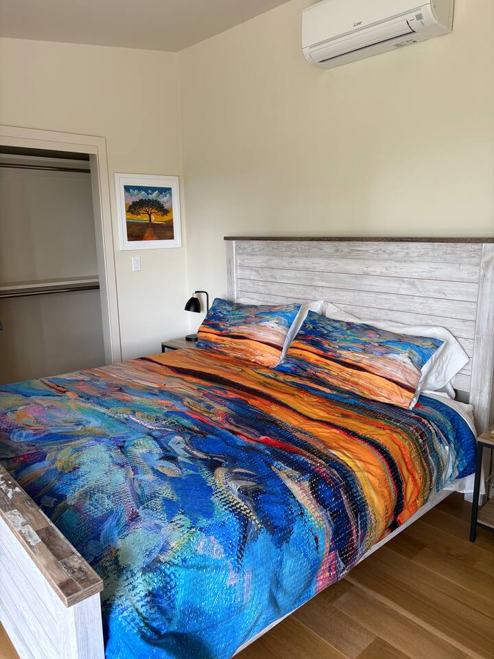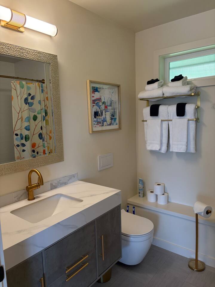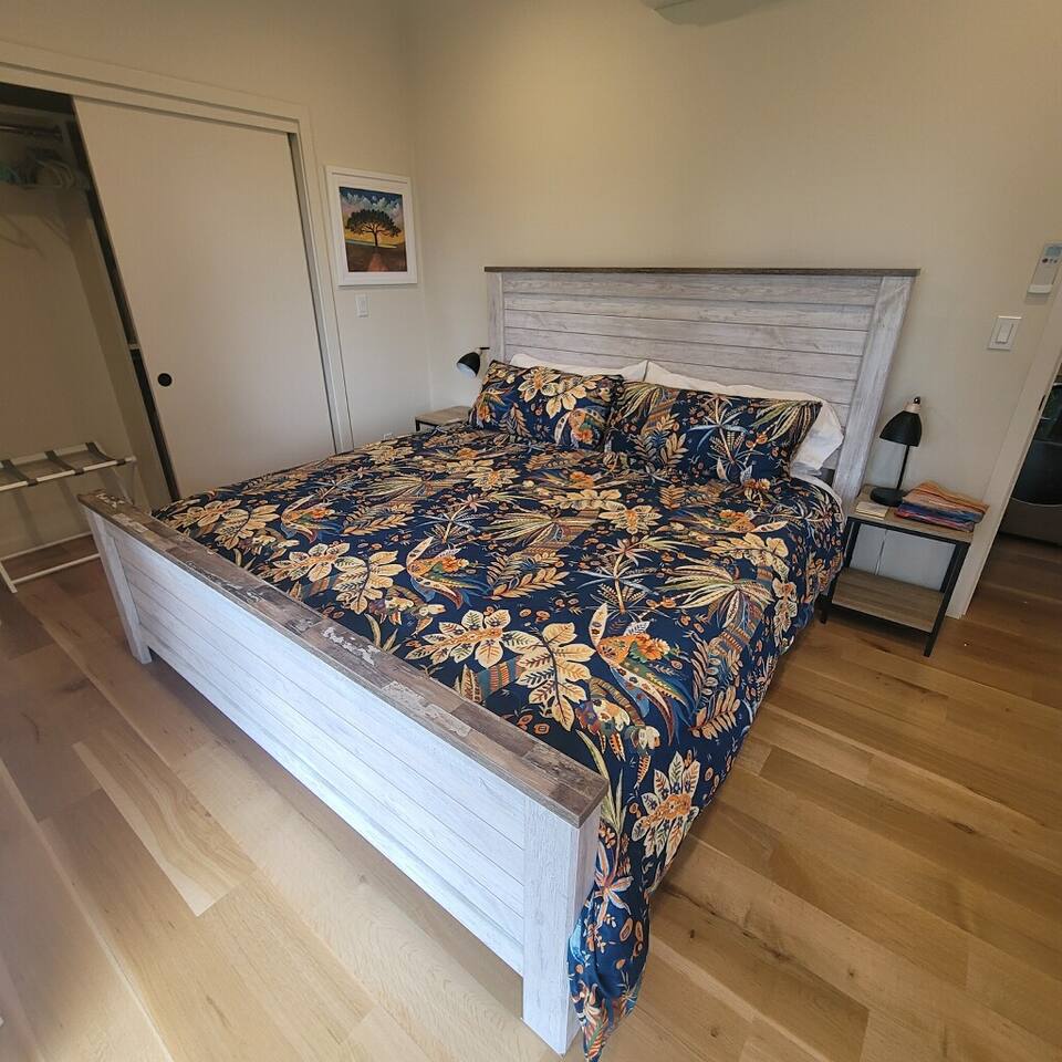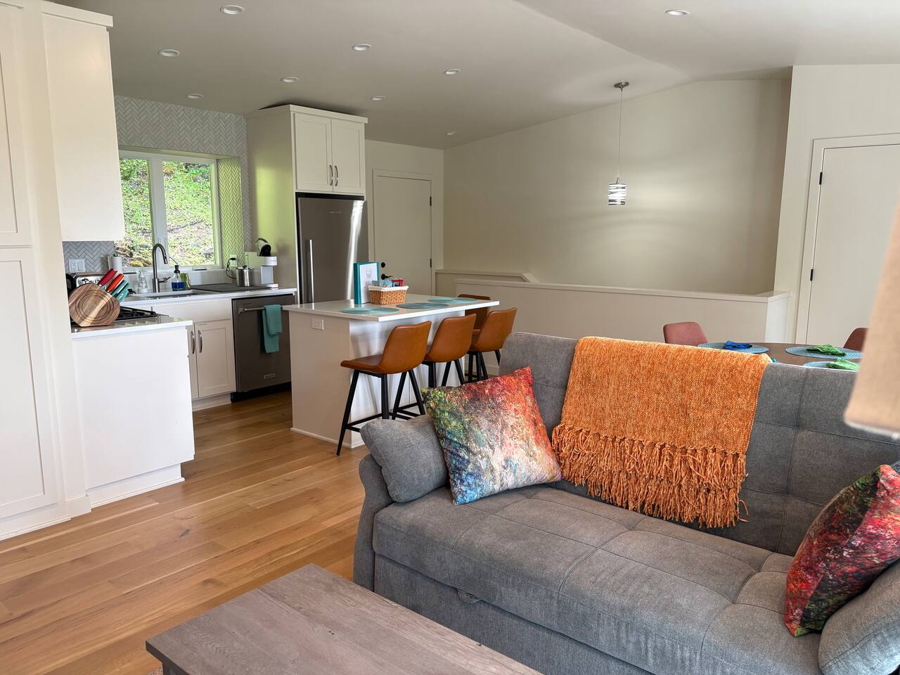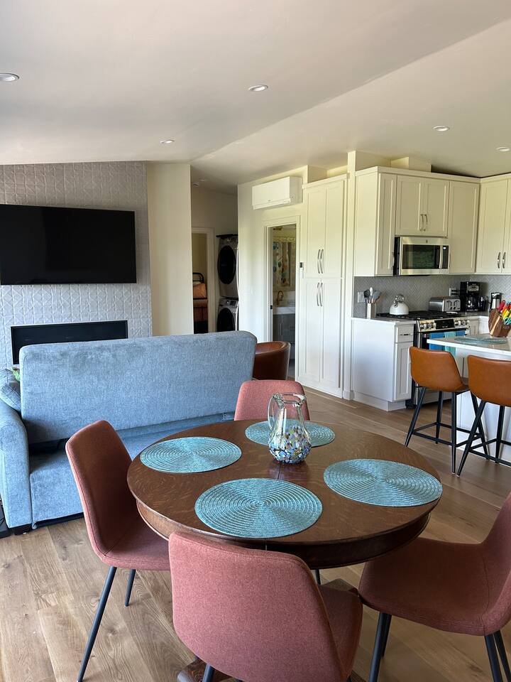 Your home away from home for visiting your UO student! This two-bedroom retreat features a plush king bed, a cozy queen, and a sofa bed for extra guests. Enjoy a fully stocked kitchen complete with essential spices and tools, plus the convenience of an in-unit stackable washer and dryer.